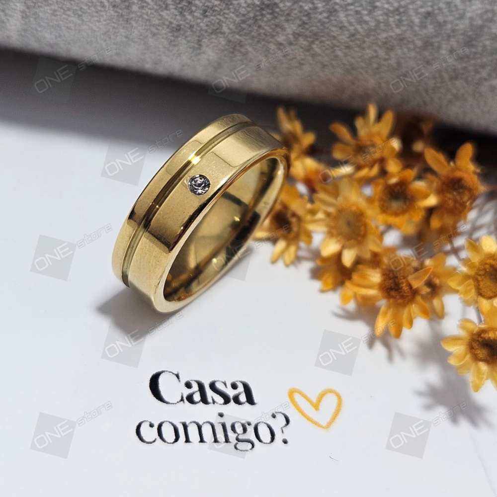 ENVIAMOS EM 24H APÓS A CONFIRMAÇÃO DO PAGAMENTO Material: Aço Inox 360L Anatômica: interno Cor: dourada Espessura: 6mm Modelo: Lisa friso com pedra Acompanha no pacote: 1 aliança DÚVIDAS COM O TAMANHO: Te ajudamos via chat, siga as instruções das fotos. Cuidados: 1 - Evite contato com produtos químicos, água do mar e piscina 2 - Para limpeza utilize apenas água, sabão neutro e um pano macio seco 3 - Não utilizar a peça ao fazer atividades que possam causar atrito, principalmente