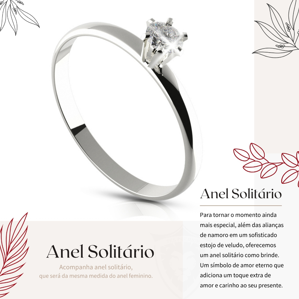 Aliança de Namoro Par com Solitário e Caixa de Veludo Compromisso Noivado Tradicional Aço Inox Prata
