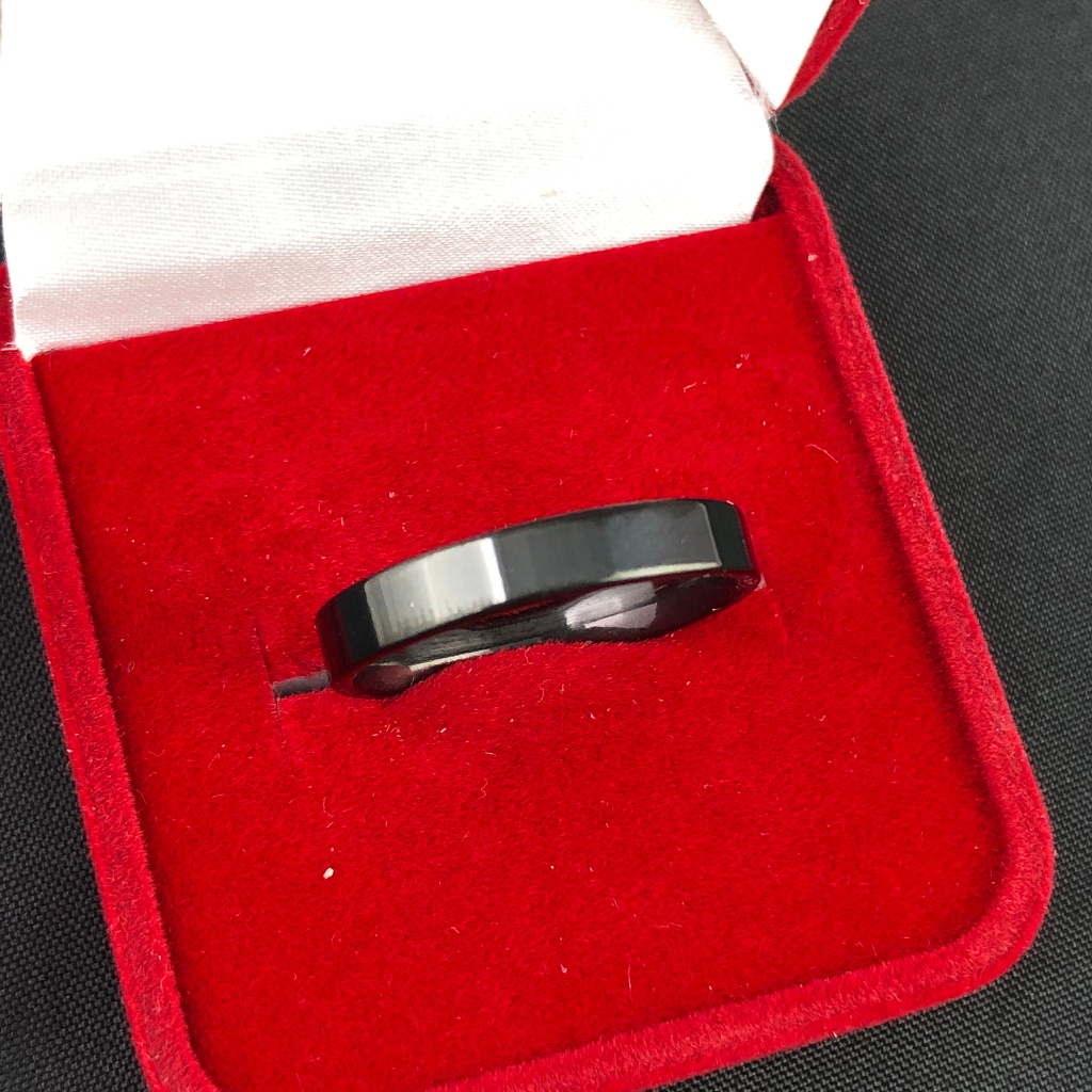 Aliança Preta Reta Quadrada Fina 4mm Aço Inoxidável 1 Unidade