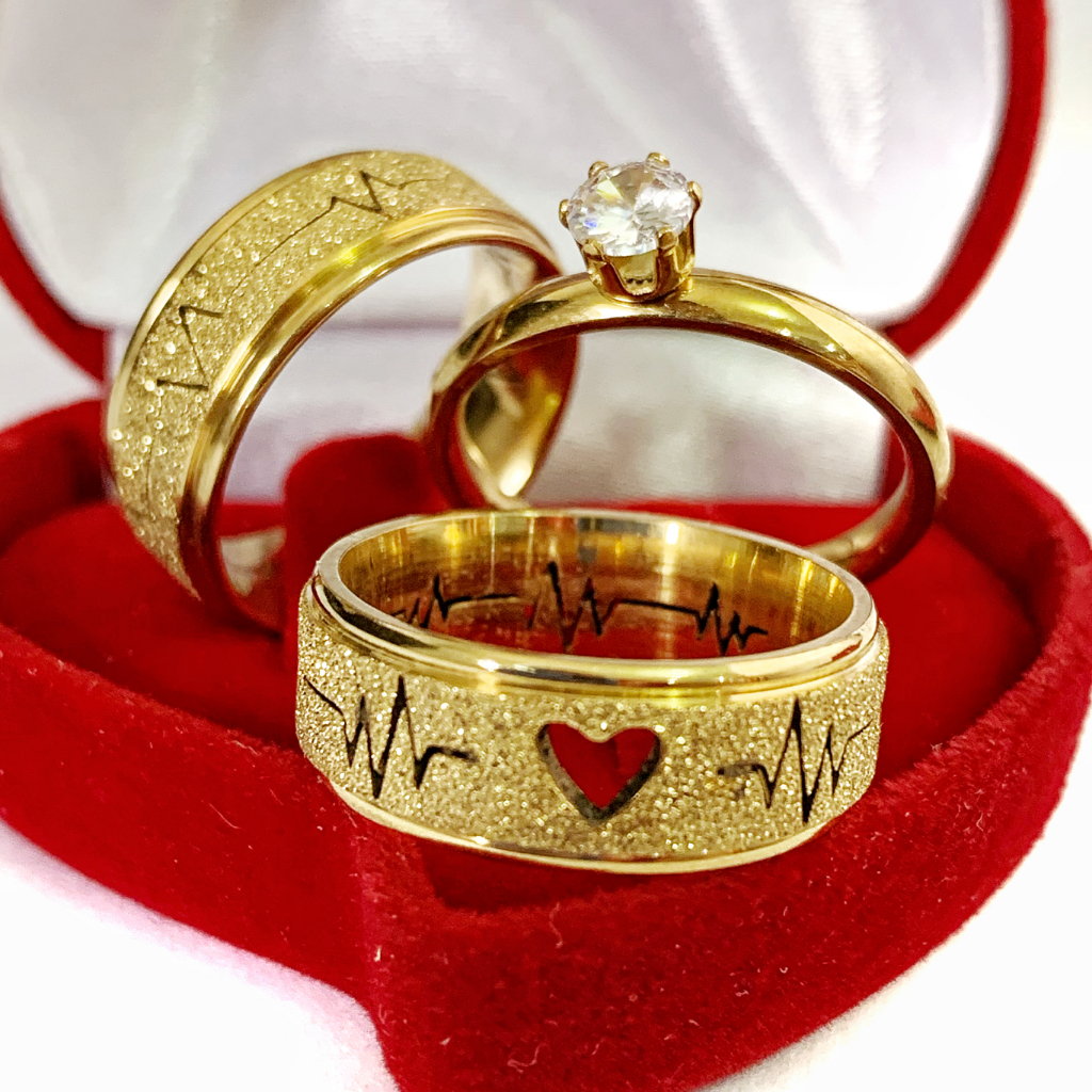 VALOR REFERENTE A DUAS ALIANÇAS NAO INCLUI ANEL SOLITARIO E CAIXINHA!!! Material: Aço Inoxidavel Formato Interno: Anatômica Formato Externo: Reta Acabamento: Diamantada Largura: 8.0 mm Nossas alianças são feitas com aço, totalmente preparado e perfeito para não causar alergias, Não possui soldas e nem emendas também são anatômicas o que da o melhor em conforto e caimento nas mãos evitando machucar seus dedos ou ate mesmo corta-los. Com nossas alianças podemos garantir preço, qualidade e conforto. COMO LIMPAR SUAS ALIANÇAS: Jamais utiliza esponjas para dar brilho em sua joia e nem use acetona, pasta de dente ou álcool para limpar suas peças e não ferva a peça. ALIANÇA BANHADA OURO PODE MOLHAR? DESCASCA? Além de processos químicos,o manuseio das peças e sua utilização na praia, na piscina e no banho podem danificar suas joias, e até mesmo o uso de medicamentos. Você sabia? Cosméticos, perfumes, produtos para cabelos e de limpeza podem conter agentes corrosivos capazes de destruir a sua peça. E acredite, um dos agentes mais agressivos e responsável pelo escurecimento das suas peças banhadas a ouro é o suor, pois ele contém em sua composição quimíca muitos agentes nocivos, tais como ácidos, sulfatos, fosfatos e cloretos.