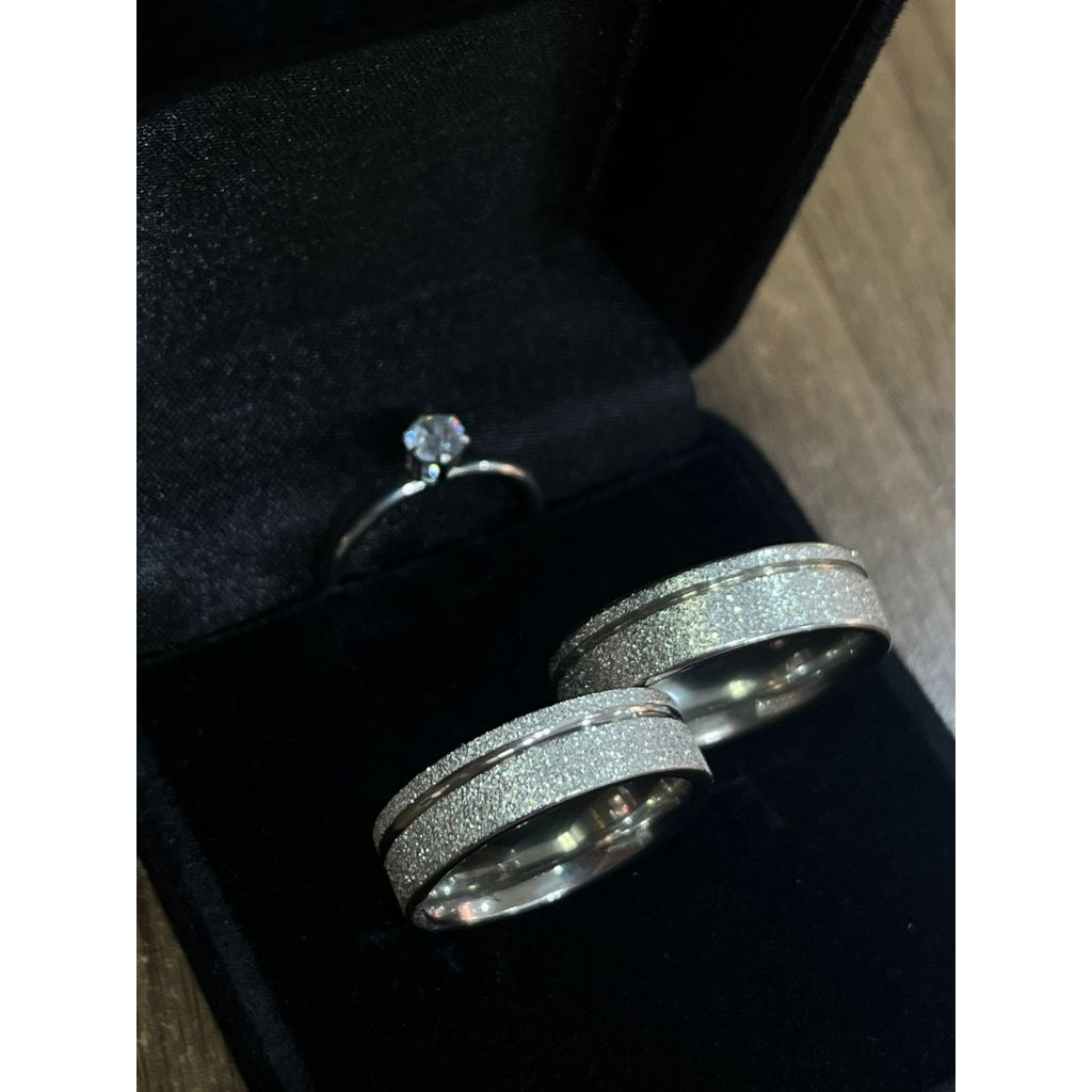 Alianças de Aço Inox PRATEADA Reta Diamantada Diamantada com 1 Friso 6mm Anatômica + Solitário