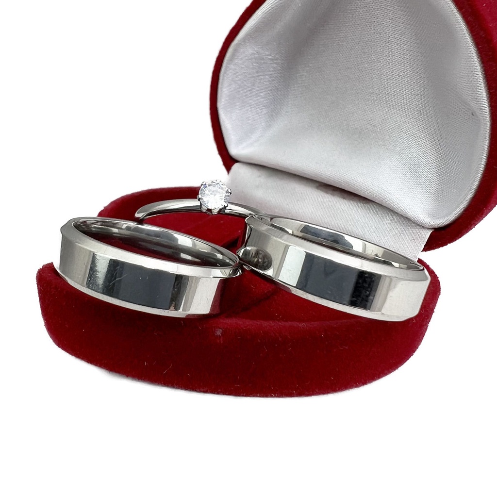 Alianças de Namoro Prata 6mm Chanfrada Lisa Polida Estilo Tradicional Classica Aço Inox Anel de Namoro Prata e Anel Solitário