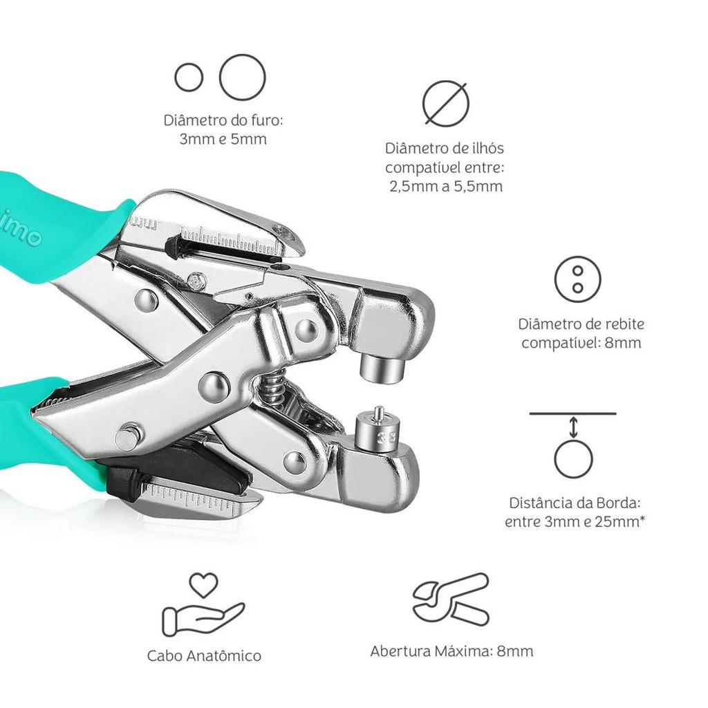 Alicate 3 em 1 aplicador de ilhós e botões Mimo Creating 2