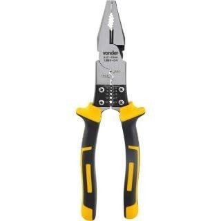 1 Alicate universal. Indicado para segurar peças planas e cilíndricas, cortar e desencapar fios e cabos elétricos, além de arames macios. Capacidade de corte: 2,0 mm. Confeccionado em aço cromo vanádio, proporcionando maior durabilidade. Possui cabo isolado para tensão de até 1.000 V, função para crimpar e função para desencapar fios de 0,5 mm² a 5,0 mm². Detalhes técnicos do produto Garantia - E (CDC)Garantia legal: 90 dias Referência3662200085 Tipo do cabo do alicate.Cabo em borracha termoplástica (TPE), isolado 1.000 V Material do corpo do alicateAço cromo vanádio Comprimento total8.1/2" - 215 mm AcabamentoEscurecido com faces polidas Massa aproximada (peso)0.41 kg