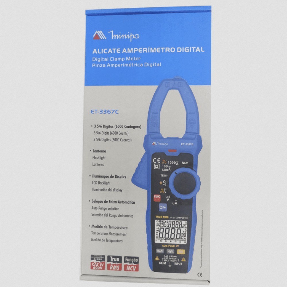 Alicate amperímetro digital 1000 amperes - ET-3367C - Minipa