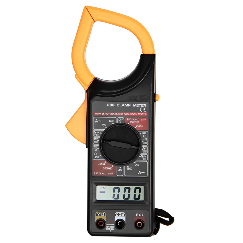 Multímetro Alicate Amperímetro Digital ferramenta Portátil C/ Estojo O visor de cristal líquido deste alicate amperímetro é altamente legível, garantindo uma leitura dos valores medidos de forma clara e nítida. A posição do ponto decimal é ajustada automaticamente, e o indicador de polaridade negativa (-) se acende quando o dispositivo é usado para medições em corrente contínua, possibilitando a leitura direta na unidade selecionada através da chave seletora. No caso de ausência de sinal, a polaridade é considerada positiva (+). Características: Este alicate amperímetro abrange uma ampla faixa de medição, de 0,1 A a 1000 A para corrente alternada e de 1 V a 750 V para tensão alternada. Além disso, oferece funcionalidades extras, como teste de isolamento para verificar a resistência de isolamento de equipamentos elétricos (100 kW a 2000 kW) e medição de resistência de componentes elétricos (0,1 a 20.000 ohms). É uma ferramenta versátil e indispensável para eletricistas. Item na embalagem: - 1 alicate amperimetro preto e amarelo; - 1 estojo de armazenamento; - 1 par de pontas de prova; - bateria 9V.