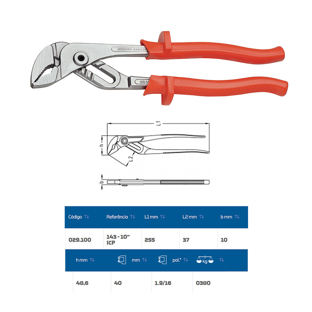 Alicate Bomba d'Água 10" 1000V Mordente Curvo Gedore 029100