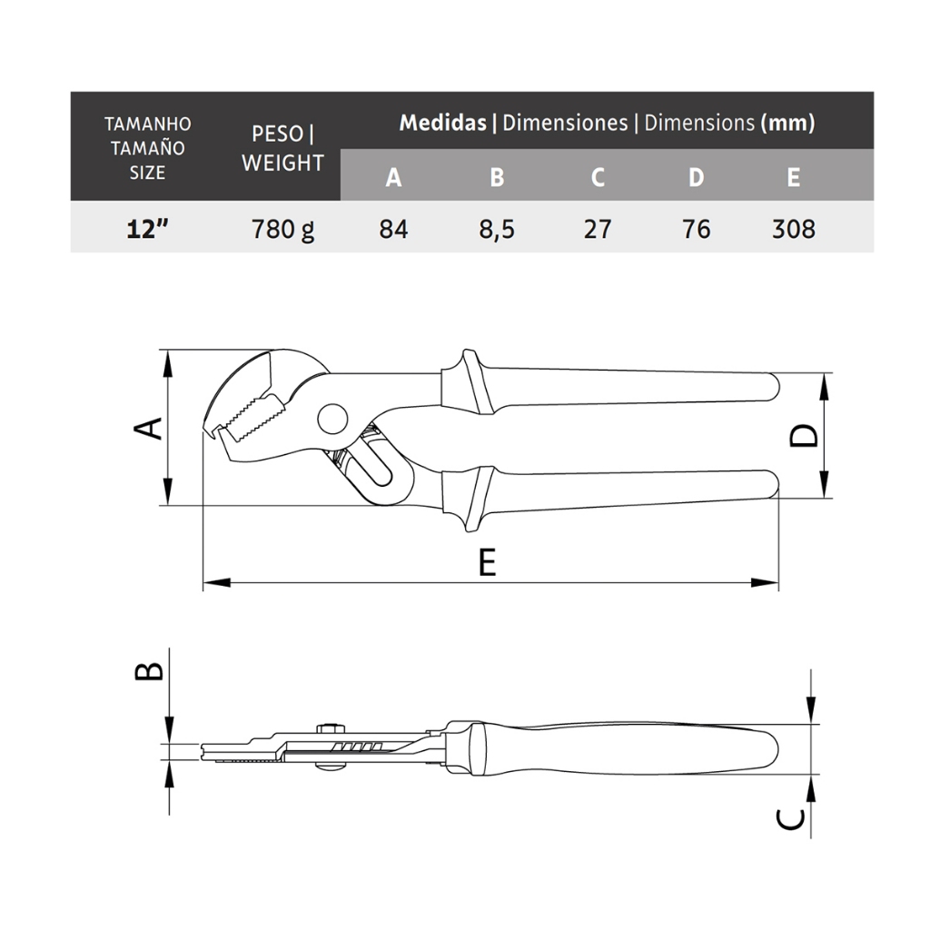 | Alicate Bomba D'água 12" Tramontina PRO 1.000V para Cunhas 44046/112 este produto | R$ 251,30 | 30% | 5.0/5 | — |