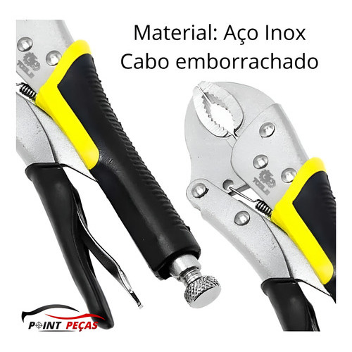 Descrição: O Alicate de Pressão com mordente curvo de 10 polegadas é uma ferramenta indispensável para uma variedade de tarefas. Este alicate de alta qualidade é fabricado com precisão em aço inoxidável, proporcionando durabilidade excepcional e resistência à corrosão, o que garante sua confiabilidade a longo prazo. Além disso, o cabo emborrachado oferece conforto adicional durante o manuseio, permitindo que você trabalhe com segurança e precisão. Com sua versatilidade, este alicate é adequado para uma ampla gama de ambientes e aplicações. Informações Técnicas: Material: Aço Inox Cabo emborrachado Abertura 10 polegadas Pressão ajustável Mordente Curvo Itens Inclusos: 1x Alicate de Pressão Cabo Emborrachado [10 Polegadas]
