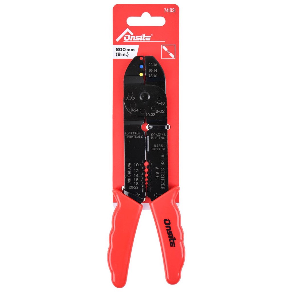 O Alicate Crimpador Multiuso 8'' - 200mm (741031) - Onsite, é ideal para quem trabalha com redes, telefonia e sistemas elétricos, pois reúne várias funções em uma só ferramenta, simplificando o trabalho com fios, cabos e conectores. O Alicate Crimpador Multiuso 8'' (200mm) permite 15 funções: - Crimpar conectores • A função principal é crimpar (prensar) conectores e terminais em fios e cabos. Ele permite fixar conectores de diversos tipos. • Essa crimpagem garante uma conexão sólida entre o fio e o conector, essencial para garantir um bom contato elétrico e uma conexão física estável. - Desencapar fios: • O crimpador multiuso geralmente possui uma função de desencapar fios, permitindo remover a capa isolante de fios e cabos para expor os condutores internos. • Isso facilita a preparação dos fios para a instalação de conectores ou terminais. - Cortar fios e cabos: • Muitas vezes, ele também vem com uma lâmina de corte integrada, possibilitando cortar fios e cabos de forma prática. • Isso é útil em situações onde é necessário ajustar o comprimento do cabo ou cortar o excesso. - Crimpar diferentes tipos de terminais: • Além de conectores de rede ou telefone, o alicate multiuso também pode ser usado para crimpar terminais elétricos (como os de veículos ou instalações elétricas) que exigem uma conexão firme entre o terminal metálico e o fio. Características: • Crimpa terminais isolados: 26-14, 12-10, 22-10. • Corta parafusos tamanhos: 6-32, 8-32, 10-32, 10-24, 4-40. • Desencapa fios: AWG #8 - #26. • Cortador de fios e arames. Código: 741031. Marca: Onsite. Tamanho: 8'' (200mm). Ean: 1008500989398.