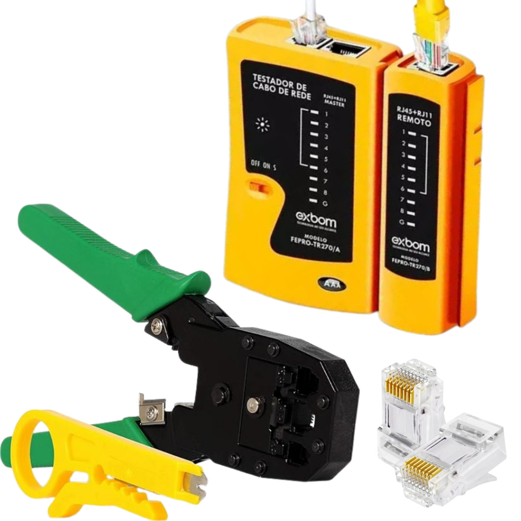 Alicate Crimpar RJ45 / RJ11 + Testador De Cabos De Rede Rj45 / RJ11+ Conectores RJ45