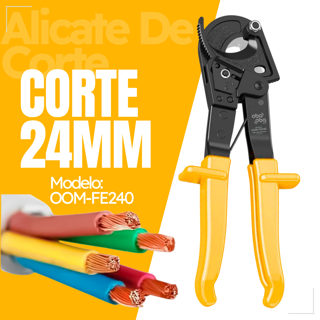Descubra o poder de cortar cabos flexíveis e maciços em cobre e alumínio com a máxima eficiência e segurança. O Alicate Tesoura de Corte foi especialmente desenvolvido para manusear cabos de até 240mm, proporcionando cortes precisos e sem exigir grande esforço físico. Com um design ergonômico que garante conforto mesmo durante uso prolongado, esta ferramenta é a escolha ideal para eletricistas, instaladores e técnicos que não abrem mão de eficiência e segurança em suas operações. Elevando padrões, o Alicate Tesoura de Corte é a ferramenta que transforma desafios em simplicidade. Ideal para quem busca precisão e praticidade no dia a dia profissional. ---------------------------------------------------------------------------------------------------------- Informações Técnicas: Corte até 24mm AWG Max Acabamento Fosfatizado Com trava de segurança Cabo Emborrachado Antiderrapante Medida do Produto 250x148x32mm Peso: 613g Modelo: OOM-FE240 Marca: Oba Oba Mix ---------------------------------------------------------------------------------------------------------- Itens Inclusos: 1x Alicate Tesoura de Corte