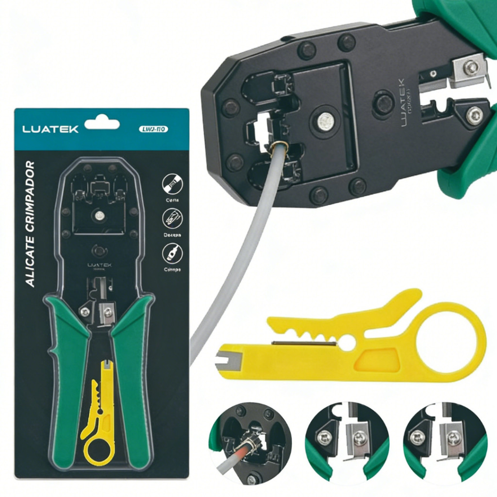 Alicate de Crimpar RJ45 RJ11 Profissional Cabo de Rede 3 em 1 Desencapador e Cortador Luatek LWJ-110