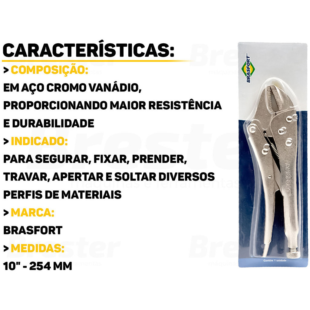 Alicate De Pressão Cromado Bico Reto E Mordente 10 Polegadas Ajustável 254mm Brasfort