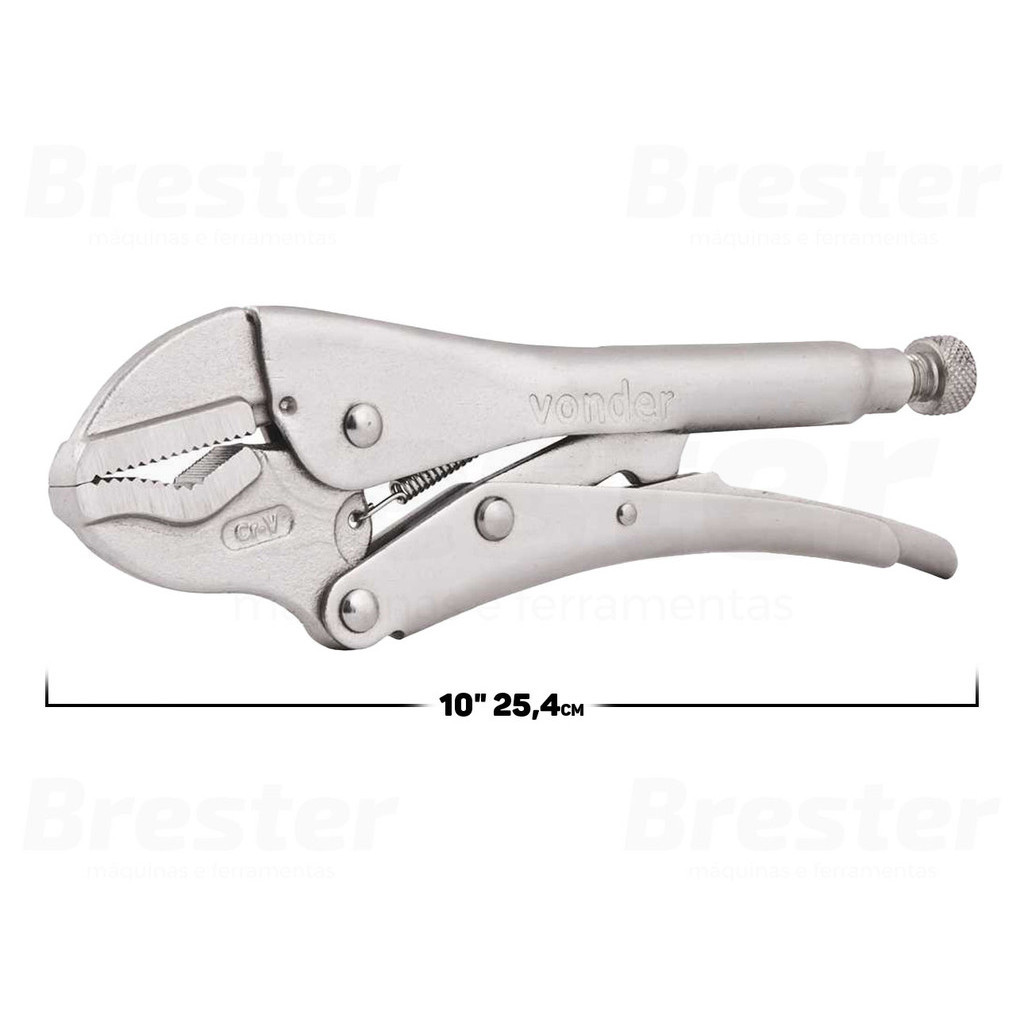 Olá, Bem vindo a Distribuidora Brester. Trabalhamos com uma grande variedade de ferramentas elétricas e manuais, descartáveis, eletroeletrônicos, artigos para casa, artigos de petshop e outros. Aqui você encontrará Produtos Originais, Nota Fiscal, Pronta Entrega e Envio Imediato! Informações do Produto: Alicate De Pressão Reto 10" Vonder Cansado de alicates que não proporcionam firmeza e precisão? O Alicate de Pressão Reto da Vonder é a resposta! Chega de perder tempo com ferramentas que não acompanham o seu ritmo. Este alicate é a solução definitiva para fixar peças com segurança e facilidade. Ideal para mecânicos e eletricistas, este alicate oferece versatilidade em diversas aplicações, proporcionando resultados excepcionais. Características: > Produzido em aço cromo vanádio, proporcionando maior resistência e durabilidade; > Indicado para segurar, fixar, prender, travar, apertar e soltar diversos perfis de materiais. Especificações Técnicas: > Formato do bico: reto; > Acabamento: cromado; > Material: aço cromo vanádio; > Comprimento aproximado: 254mm. - Marca: Vonder - Garantia: 90 dias contra defeitos de fabricação Vantagens de comprar na Brester: - Nota fiscal para Pessoa Física e Pessoa Jurídica; - Produto novo, com garantia de fábrica; - Produto a pronta entrega; - Envio em até 24hs em dias úteis após confirmação do pagamento. Obrigado por escolher a Brester Máquinas.
