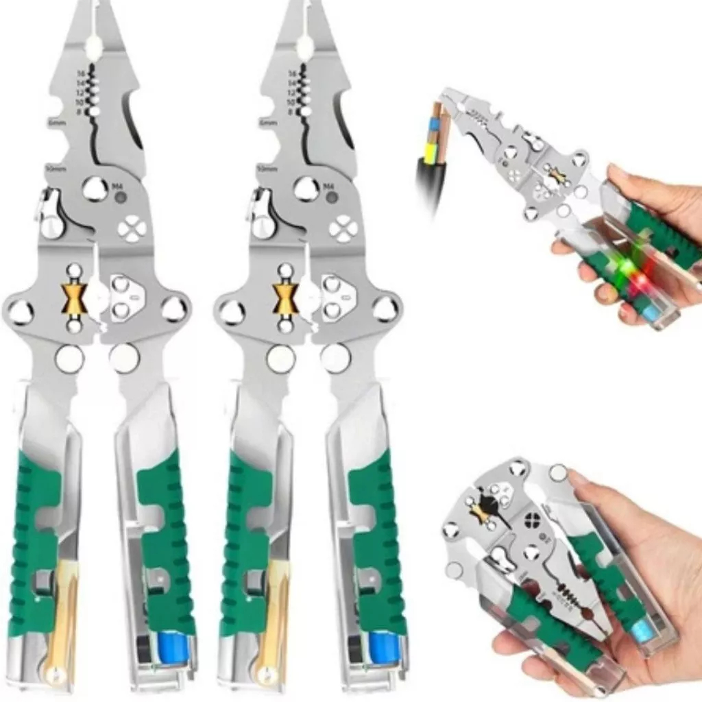 Descascador De Fio Dobráveis Com Detector De Tensão , Alicate Multifuncional Para Descascar Fios Cortar E Puxa Combina funções de teste de voltagem, decapagem de fios e crimpagem em uma ferramenta compacta — perfeita para profissionais e amantes do faça você mesmo. Testador de Voltagem Integrado Detecta instantaneamente circuitos energizados para aumentar a segurança e a eficiência durante o trabalho elétrico, economizando tempo e reduzindo a necessidade de ferramentas adici onais. Design Ergonômico e Dobrável O cabo confortável e antiderrapante reduz a fadiga das mãos, enquanto a estrutura dobrável garante portabilidade e armazenamento seguro. • Especificações do Produto Material: Construção em metal durável com cabo isolado Funções: Teste de voltagem, decapagem de fios, crimpagem Design: Ferramenta compacta e dobrável Cabo: Cabo ergonômico com aderência antiderrapante Uso: Para circuitos AC/DC, manutenção de fios e reparo de componentes Portabilidade: Leve e dobrável para fácil armazenamento • Exibição de Cenário Reparos Domésticos: Ideal para consertar tomadas elétricas, luminárias ou problemas de fiação em casa. Garagem e Automotivo: Útil para reparos elétricos automotivos, como sistemas de áudio de carro, fusíveis e conexões de fios. Manutenção no Local: Essencial para eletricistas ou técnicos profissionais que realizam instalações ou diagnósticos. Oficinas e Projetos DIY: Suporta diversas tarefas, desde montagem de kits eletrônicos até manutenção de pequenos eletrodomésticos. • Função do Produto Detecção de Voltagem: Testa rapidamente se um circuito está energizado, aumentando a segurança antes de iniciar o trabalho. Decapagem de Fios e Crimpagem: Remove a isolação de forma limpa e crimpagem de terminais para conexões de fios eficientes. Integração Multifuncional: Consolida várias ferramentas em uma unidade para economizar espaço e simplificar fluxos de trabalho. • Detalhes do Produto Construção Resistente: Feita de materiais de alta resistência para suportar o desgaste diário e ambientes de trabalho elétrico. Marcação a Laser: Indicadores de ferramenta de fácil leitura que resistem ao desbotamento e desgaste. Cabo Confortável: Cabo macio e antiderrapante projetado para reduzir a tensão durante o uso prolongado. Armazenamento Seguro: O mecanismo de dobra garante que a ferramenta permaneça compacta e previne acidentes quando não estiver em uso. • Comparação do Produto Comparado a Caixas de Ferramentas Tradicionais: Substitui várias ferramentas de função única, economizando espaço e reduzindo o peso de transporte. Comparado a Alicates Básicos: Oferece recursos avançados, como detecção de voltagem e crimpagem, que os alicates básicos não têm. Comparado a Ferramentas Não Dobráveis: O design dobrável aumenta a portabilidade e a segurança, especialmente para trabalho móvel ou em caixas de ferramentas apertadas.
