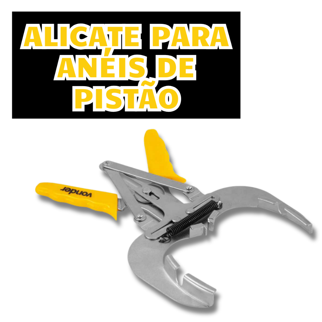 Alicate Expansor Para Tirar e Colocar Aneis De Pistão 80mm a 120mm Vonder Indicado para colocar e retirar Anéis de Pistão. ITENS INCLUSOS: 1 Alicate Para Remover / Colocar Anéis de Pistão DIÂMETRO: Abertura de 80mm a 120mm MATERIAL: Fabricado em aço cromo níquel e cabo plastificado. MARCA: Vonder