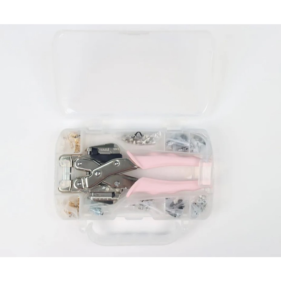 Alicate Furador Aplicador De Ilhós Profissional Rosa Com Estojo
