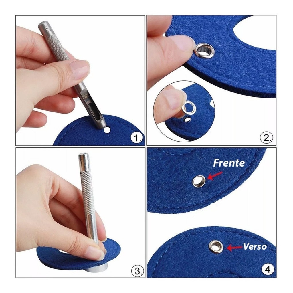 Este é um alicate de fixação de ilhós multiuso que pode ser usado para colocar ilhós e também fazer furos em papelão fino ou placa de plástico. Feito de aço de alta qualidade, este alicate de fixação de ilhós é durável e bastante fácil de usar. Vem com 100 peças de prensa fácil de ilhós ocos que você pode usar em muitos projetos. Ótimo para prender ilhós em lonas, tendas, bolsas de lona, toldos, coberturas de piscina, etc. É um conjunto de ferramentas necessário para artesanato em couro, confecção de roupas e muitos trabalhos de reparo. ATENÇÃO: *INDICADO ILHOS DE ALUMÍNIO, COBRE, LATÃO E PLÁSTICO NÚMERO 54. Especificações: Material: liga de zinco, aço carbono Tamanho do alicate: 16.5*15.5cm / 6.45*6.1" Diâmetro do ilhó: 5x3x7mm Medida nº 54 (veja medidas na foto do anúncio) Quantidade de ilhós: 100pcs Peso: 315g (aprox.) O pacote inclui: - 1 alicate de ilhós - 100 ilhós Dourado nº 54 1 Estojo organizador ( com 12 divisorias) 1 Pinça 1 Suporte 1 Apoio 1 Vazador 3 Divisorias **Todos os ilhós são no tamanho 54 em alumínio.** 40 Ilhós Vermelho 40 Ilhós Amarelo 40 Ilhós Roxo 40 Ilhós Azul 40 Ilhós Branco 40 Ilhós Niquelado 40 Ilhós Preto 40 Ilhós Laranja 40 Ilhós Azul Claro 40 Ilhós Verde 400 Arruelas