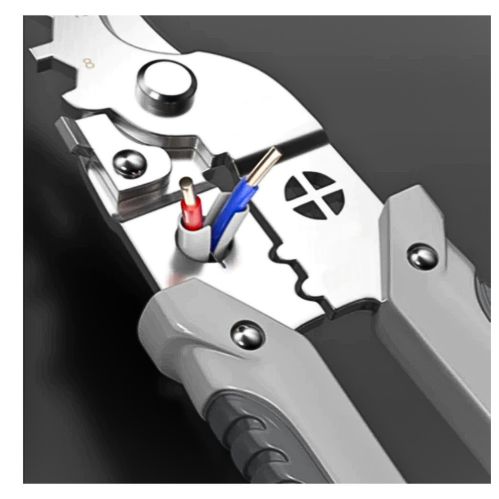 Alicate Multifuncional para Crimpar e Descascar – Ferramenta Imprescindível com Excelente Precisão e Adaptabilidade! Ponta Texturizada: Garante maior aderência ao manipular objetos como cabos e parafusos, prevenindo escorregamentos durante aperto e ajustes. Superfície escurecida após polimento fino e tratamento anti-oxidação, resultando em aspecto elegante e maior resistência à corrosão. Cabos revestidos em PVC oferecem conforto e aderência, ideais para uso prolongado. Perfeito para trabalhos com cabos de pequeno diâmetro, descascamento, corte e muito mais. Especificações: Comprimento total: 217mm Comprimento do cabo: 100mm Comprimento da cabeça: 116mm Material: Aço inoxidável Cores: Prata e cinza Dimensões do produto: 20,5 cm x 6 cm (8" x 2,4") Conteúdo da embalagem: 1 unidade de alicate decapador e cortador de fios.