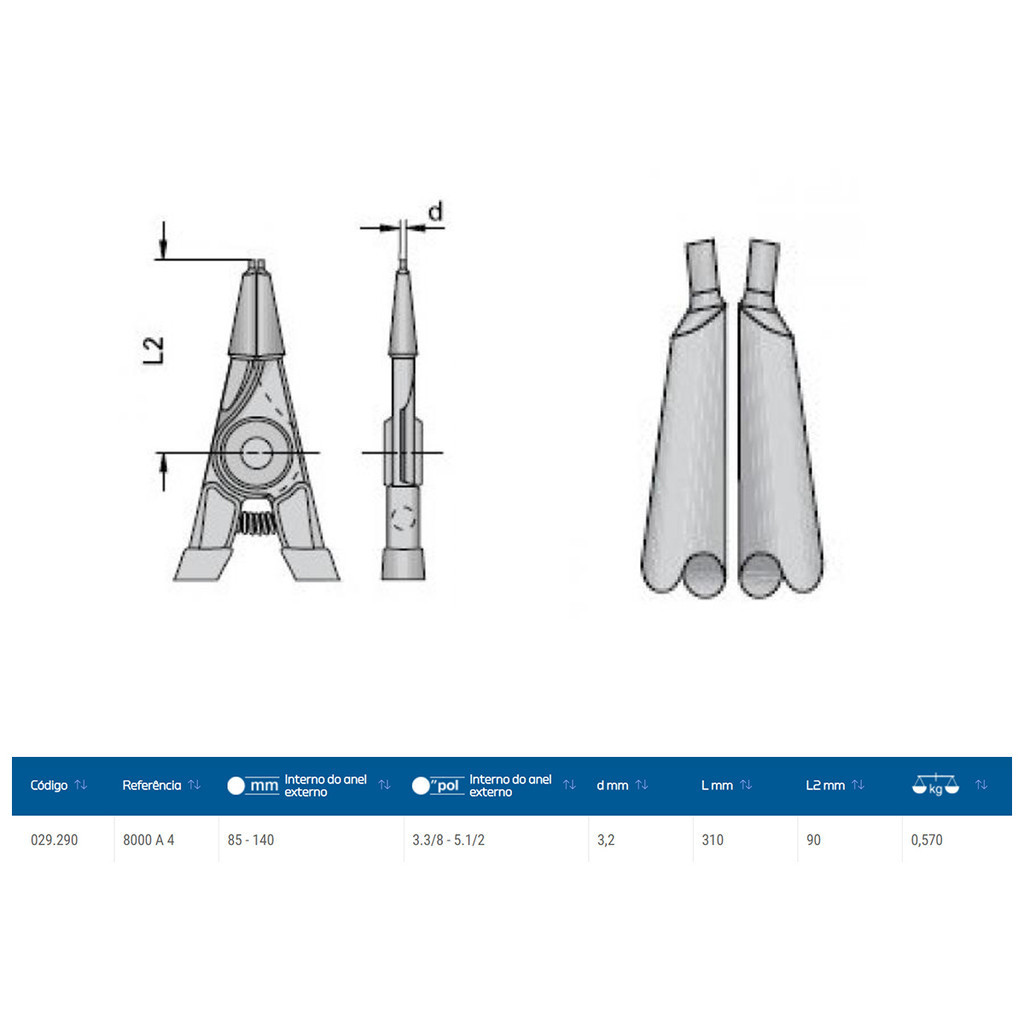 Alicate para Anéis 12" Externos Reto 85-140mm Gedore 8000A4