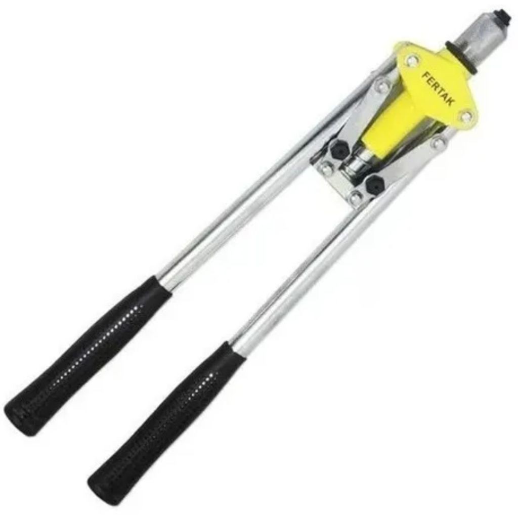 DESCRIÇÃO DE ALICATE REBITADOR 17 POLEGADAS 3 PONTAS MODELO 1026 alicate rebitador de 17 polegadas, modelo 1026, da marca Fertak, é uma ferramenta manual projetada para unir materiais por meio de rebites. Aqui está uma descrição detalhada desse alicate específico:1. Tamanho:Este alicate rebitador tem um comprimento total de 17 polegadas, proporcionando alavanca e força suficientes para realizar a tarefa de rebitagem de maneira eficiente.2. Construção:Geralmente, o alicate é construído em aço de alta qualidade, proporcionando durabilidade e resistência. A construção robusta é essencial para lidar com a pressão aplicada durante o processo de rebitagem.3. Modelo e Marca:Modelo: 1026Marca: Fertak4. Sistema de Rebitagem:Este alicate é projetado para trabalhar com um sistema de rebitagem de três pontas. Isso significa que ele é capaz de instalar rebites com três pernas, proporcionando uma conexão estável e resistente.5. Capacidade do Rebite:O alicate é projetado para acomodar rebites de diferentes diâmetros e comprimentos, oferecendo versatilidade no uso.6. Empunhadura Ergonômica:Possui uma empunhadura ergonômica projetada para proporcionar conforto ao operador durante o uso prolongado. Isso ajuda a reduzir a fadiga das mãos.7. Mecanismo de Liberação Rápida:Pode incluir um mecanismo de liberação rápida que facilita a troca rápida de rebites e agiliza o processo de trabalho.8. Aplicações:Indicado para união de materiais como metal, plástico, couro, entre outros, utilizando rebites como elementos de fixação.9. Uso Industrial e Doméstico:Adequado tanto para aplicações industriais quanto para projetos domésticos. Pode ser usado em trabalhos de reparo, montagem e construção.10. Durabilidade e Manutenção:Construído para resistir ao desgaste e oferecer durabilidade. A manutenção regular, como a lubrificação de partes móveis, pode contribuir para a longevidade da ferramenta.11. Certificações de Segurança:- Certifique-se de que o alicate atenda às normas de segurança e regulamentações aplicáveis para garantir a operação segura.O alicate rebitador 17 polegadas modelo 1026 da marca Fertak é uma ferramenta valiosa para quem realiza trabalhos que envolvem a união de materiais por meio de rebites, proporcionando eficiência e durabilidade.Alicate Rebitador Manual Tipo Alavanca 17'' Pol Para Rebites de 1/8 Pol - 5/32 Pol - 3/16 Pol ProfissionalRebitador Manual Tipo Alavanca 17'' Pol Para Rebites de 1/8 Pol - 5/32 - 3/16 Pol Profissional FertakAs alças mais longas permitem maior alavancagem e instalação mais fácil de rebitesPara Rebites:• 1/8" > 3,8 mm• 5/32" > 4 mm• 3/16" > 4,8 mmTamanho: 43 CmComposição: Aço Carbono Polido e Cabo em PVC