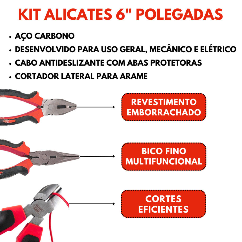 | Alicate Universal 6" Polegadas Multiuso Emborrachado Ferramentas Bi... este produto | R$ 20,00 | — | 4.6/5 | 17 |