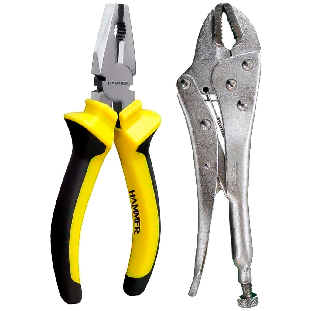 COMERCIAL VIPASA DISTRIBUIDORA. Alicate Universal 8Pol. Reforçado Eletricista + Alicate De Pressão Prensa Boca Reta 10Pol. Composto por: - 01 Alicate de Pressão 10Pol. com Mordente Reto - 01 Alicate Universal Aço Polido 8Pol. Hammer Alicate De Pressão Boca Reta 10 Pol Em Aço Carbono Regulável Apresentamos o Alicate De Pressão Boca Reta 10 Pol Regulável Em Aço Carbono da marca Fertak, modelo 1012. Este é um instrumento indispensável para qualquer caixa de ferramentas, seja para profissionais ou para uso doméstico. Feito de aço carbono de alta qualidade, este alicate de pressão é resistente e durável, garantindo um desempenho excepcional e uma longa vida útil. A sua boca reta de 10 polegadas é ideal para uma variedade de trabalhos, desde apertar parafusos até segurar peças para soldagem. O design regulável deste alicate permite que você ajuste a pressão de acordo com a tarefa em mãos, proporcionando maior controle e precisão. Além disso, o seu cabo ergonômico oferece um manuseio confortável e seguro, reduzindo a fadiga durante o uso prolongado. Com o Alicate De Pressão Boca Reta 10 Pol Regulável Em Aço Carbono da Fertak, você terá uma ferramenta confiável e versátil que irá atender a todas as suas necessidades de aperto e fixação. Adquira já o seu e experimente a qualidade e eficiência que só a Fertak pode oferecer. Alicate Universal 8Pol. Cabo Emborrachado Hammer Profissional Alicate Universal 8Pol. Cabo Emborrachado Hammer Profissional O Alicate Universal 8Pol. Emborrachado Hammer Gyal7001 200mm é uma ferramenta manual versátil projetada para uma variedade de usos em trabalhos de manutenção, reparo e construção. Tamanho e Dimensões: Comprimento: 200mm (8 polegadas) Este tamanho torna-o adequado para uma ampla gama de tarefas, oferecendo uma boa combinação de manuseio e alcance. Material e Construção: Fabricado com materiais de alta qualidade para garantir durabilidade e desempenho consistente. Possui revestimento emborrachado para oferecer aderência confortável e segura durante o uso, reduzindo a fadiga das mãos. Design Universal: Projetado para realizar várias funções, como cortar, torcer, segurar e manipular diferentes tipos de materiais. A ponta do alicate é projetada para ser versátil e eficaz em uma variedade de situações, permitindo a realização de múltiplas tarefas com uma única ferramenta. Desempenho e Usabilidade: Oferece excelente capacidade de corte para arames e fios de diferentes espessuras. Os cabos ergonômicos e emborrachados proporcionam conforto durante o uso prolongado, além de fornecerem uma aderência firme para maior controle e precisão. O design leve facilita o manuseio e reduz a fadiga do usuário durante longos períodos de uso. Aplicações: Ideal para uso em eletrônica, trabalhos elétricos, encanamento, carpintaria e uma variedade de outras aplicações industriais e domésticas. Pode ser usado para puxar, girar, prender e dobrar vários materiais, tornando-o uma ferramenta versátil em qualquer caixa de ferramentas. Marca e Modelo: Marca: Hammer Modelo: Gyal7001 O Alicate Universal 8Pol. Emborrachado Hammer Gyal7001 200mm é uma ferramenta confiável e versátil que oferece desempenho consistente e durabilidade em uma variedade de situações de trabalho. Seu design ergonômico e emborrachado, juntamente com sua capacidade de realizar várias funções, o tornam uma escolha popular entre profissionais e entusiastas de bricolagem. COMERCIAL VIPASA DISTRIBUIDORA.