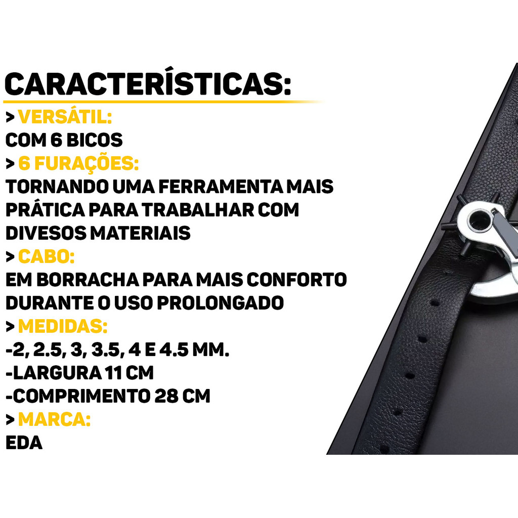 Alicate Vazador Furador Para Couro Eva Chinelo Borracha Cinto Com 6 Bicos Cabo Emborrachado Eda