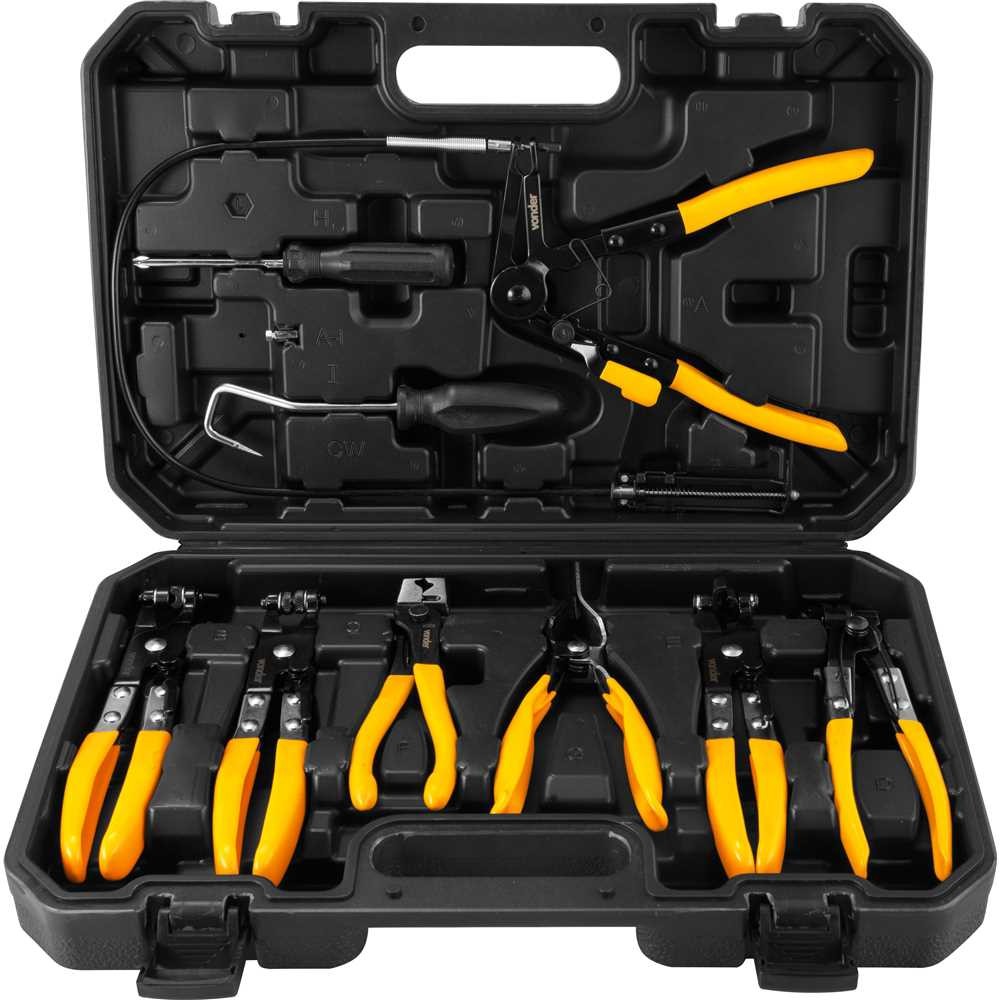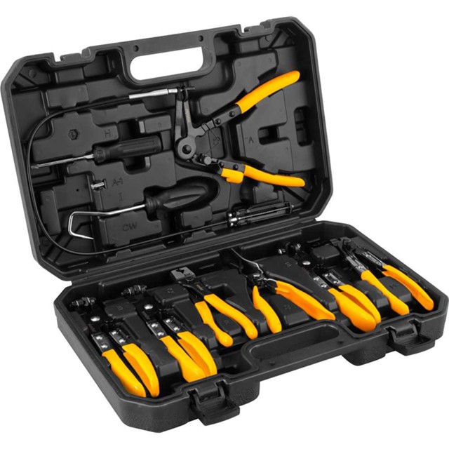 O jogo de alicates para abraçadeiras com 9 peças VONDER é indicado para abertura e manuseio de diferentes tipos de abraçadeiras utilizadas em mangueiras de combustível, óleo, água, ar-condicionado e outros sistemas automotivos. Ideal para oficinas mecânicas, auto centers e profissionais que atuam em manutenção veicular, o conjunto oferece versatilidade, precisão e praticidade em diversas aplicações. Fabricados em aço carbono com cabos revestidos em PVC, os alicates contam com sistema de trava que mantém a abraçadeira aberta, facilitando a instalação e remoção. O kit inclui ferramentas com formatos variados, inclusive um alicate flexível para áreas de difícil acesso, além de chaves manuais e maleta plástica para armazenamento e transporte organizado. Características: Modelo: 6510009009 Referência: 6510009009 Material: Aço carbono com cabo revestido em PVC Capacidade: Abraçadeiras de Ø 19 mm a Ø 55 mm Massa aproximada (peso): 3 kg Benefícios: Conjunto completo para abraçadeiras de diversos tipos e tamanhos Sistema de trava que facilita o manuseio das abraçadeiras Design ergonômico que reduz a fadiga durante o uso Inclui alicate flexível para áreas de difícil acesso Acompanha maleta plástica para organização e transporte Conteúdo da embalagem: 1 Conjunto de alicates para abraçadeiras com 9 peças. Acompanha: 1 maleta plástica, 1 alicate para abraçadeira elástica com mordente fixo e chato (plano), 1 alicate para abraçadeira elástica com ponta em ângulo de 45°, 1 alicate flexível para abraçadeira elástica, 1 alicate para abraçadeira de mangueira com mordente em ângulo, 1 alicate para abraçadeira elástica perfil chato (plano), 1 alicate para abraçadeira tipo clic-r, 1 alicate para desconectar mangueira de combustível, 1 chave manual com ponta angular para remoção de mangueiras e 1 chave manual com ponta phillips e fenda.