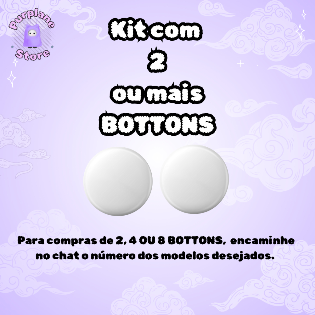 COMPRAS DE 2, 4 OU 8 BOTTONS: Encaminhar no chat o número dos modelos desejados. Caso não envie, serão enviados bottons aleatórios disponíveis no anúncio. Informações sobre o produto: - Tamanho: 4,5 cm - Bottom de ALFINETE - Acabamento em plástico brilhante PRODUTO FANMADE, DE FÃ PARA FÃ.