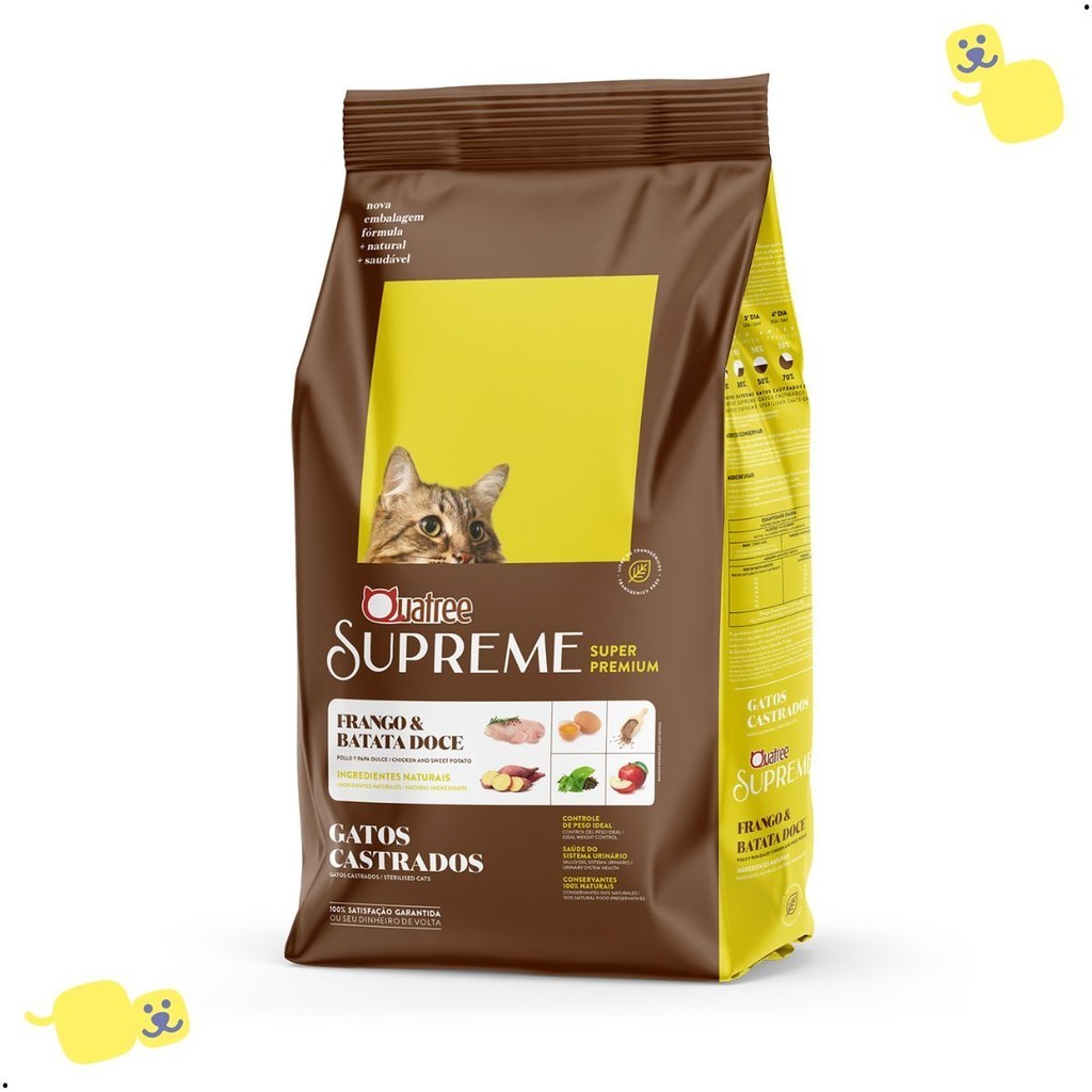 Alimento Quatree Supreme Ração Gatos Castrados Frango Batata Doce 3Kg Super Premium Controle Peso