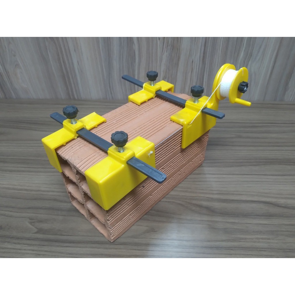Para ter maior rapidez e qualidade na construção de muros e paredes, utilize o Alinha Bloco ! Ele se ajusta em Blocos e Tijolos de até 22 cm de largura e é muito simples de usar. Cada Alinha Bloco vem com 4 peças plásticas (garras), 4 parafusos de fixação, 2 hastes de Nylon* e 15 metros de linha (já enrolados no carretel). Primeiro, prenda duas garras em cada haste conforme o lado e ajuste nos Blocos. Depois, estique a linha e gire o parafuso do carretel para manter a linha esticada. Como os parafusos servem apenas para manter a ferramenta no ajuste dos Blocos, nenhuma fixação deve ser feita com força. A pressão exagerada dos parafusos pode danificar a ferramenta! O Alinha Blocos e Tijolos é uma moderna ferramenta de construção, já muito utilizada no assentamento de tijolos, blocos cerâmicos ou de concreto. É um gabarito para assentar blocos que dá mais agilidade no processo de levantamento de muros e paredes. Alinha fácil o manuseio e dispensa o uso de pregos, diminuindo o tempo de construção por facilitar o seu alinhamento, reduzindo o risco de acidentes. A linha certa para que o seu trabalho seja feito com precisão. Guia linha de pedreiro que alinha tijolos e blocos facilmente, com excelente durabilidade, já que é feito de poliestireno (plástico resistente) e hastes de Nylon* resistente, ou seja, não estraga com chuva. Envio Imediato