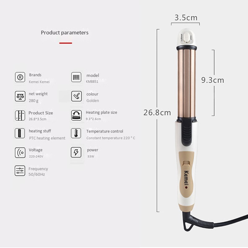 Descrição do produto em inglês após português Especificações: Tipo de Item: Ferro Modo de Montagem Cauda Power Cord: 360° Rotatable Tempo de estilo ideal: 1-2 min. Dimensões da Prato de Aquecimento: Outros Diâmetro do condutor térmico: Menos de 15 mm Tensão: 210-240V Número do modelo: km-8851 Material da placa térmica/bar: Alumínio Fonte de Energia: Elétrica Nome da marca: Kemei Certificação: ce Certificação de Qualidade de Commodity: 3C Vida útil da placa térmica/bar: 20.000 vezes Temperatura mín.: 120 °C Temperatura máxima: 220 °C Segmentos de Ajustamento Termostato: 1 Potência: 25W-39W Cabelos aplicáveis: Seco Controlador de Temperatura: Termostático ************************************************** Description: Specifications: Item Type : Iron Power Cord Tail Assembly Mode : 360° Rotatable Optimal styling time : 1-2 min. Dimensions Of Heating Plate : Others Diameter of thermal conductor : Less than15 mm Voltage : 210-240V Model Number : km-8851 Material of thermal plate/bar : Aluminum Power Source : Electric Brand Name : Kemei Certification : ce Commodity Quality Certification : 3C Service life of thermal plate/bar : 20,000-50,000 times Min. temperature : 120 °C Max. temperature : 220 °C Thermostat Adjustment Segments : 1 Power : 25W-39W Applicable hair : Dry Temperature Controller : Thermostatic
