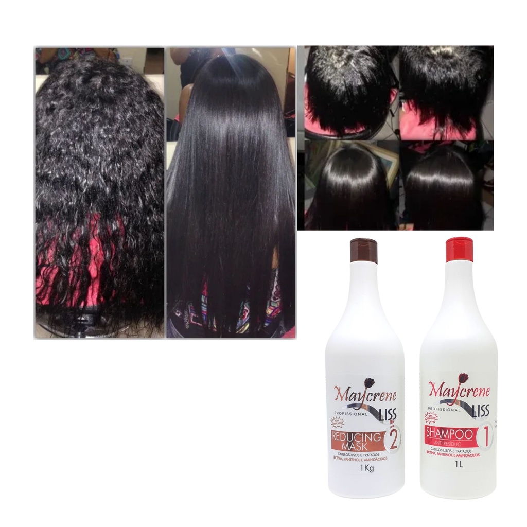 A Escova Progressiva Liss Maycrene foi idealizada para atender a todos os tipos de fios, desde aqueles que querem apenas diminuir o volume até aqueles que querem alisar completamente, dos fios ondulados até os crespos. E tudo isso SEM FORMOL, mantendo os fios mais hidratados e menos danificados. Composição: Biotina, Pantenol, Polímeros e Aminoácidos OBS. A Escova Progressiva Liss Maycrene é compatível com cabelos loiros, mas sempre faça o teste de mecha antes de prosseguir com o procedimento Shampoo Anti Resíduos Liss Maycrene O Shampoo Anti Resíduos Liss Maycrene foi desenvolvido com a mais alta tecnologia aliada a ativos naturais especialmente para proporcionar uma limpeza profunda sem agredir os fios. Reducing Mask Liss Maycrene A Reducing Mask Liss Maycrene é a nova geração dos fios. Cauterização, Plástica Capilar, Redução de Volume, enriquecido com ativos nobres que confere hidratação profunda desenvolvendo brilho, maciez e a beleza natural dos fios. É indicado para todos os tipos de cabelos. Modo de Usar: 1º Passo: Aplique nos cabelos úmidos o Shampoo Anti Resíduo Liss Maycrene e massageie suavemente, enxágue e repita a operação. Seque totalmente os fios com um secador. 2º Passo: Com o auxílio de um pente faça a divisão do cabelo em mechas e aplique a Reducing Mask (Ativo) mecha a mecha da raiz às pontas. Seque com o secador e um pente fino. Escove e pranche. OBS. O tempo de pausa com o produto no cabelo deverá ser de acordo como tipo do cabelo, DEPENDE DA ESPESSURA DO FIO. Conteúdo da Embalagem: 1 Shampoo Anti Resíduos 1L Liss Maycrene 1 Reducing Mask Ativo 1L Liss Maycrene