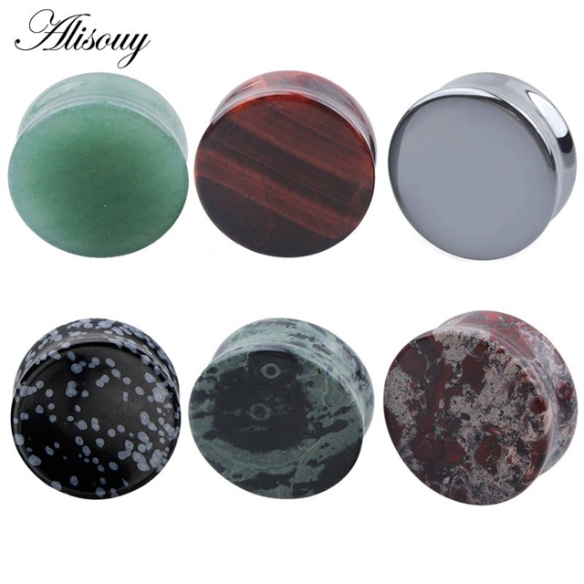 Alisouy 1 Par Orelha Expansor Corpo Piercing Túneis Hematita Jóias De Carne Orgânica De Pedra Tampões De