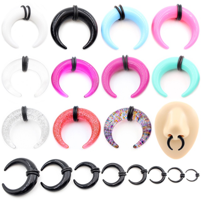 Alisouy 2 Peças De Acrílico E Chifre De Búfalo Em Forma De C-Anéis De Septo Expansor De Maca Cônica De Orelha (1.6 Mm-16
