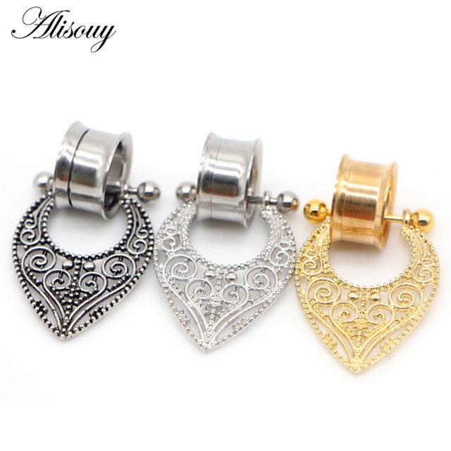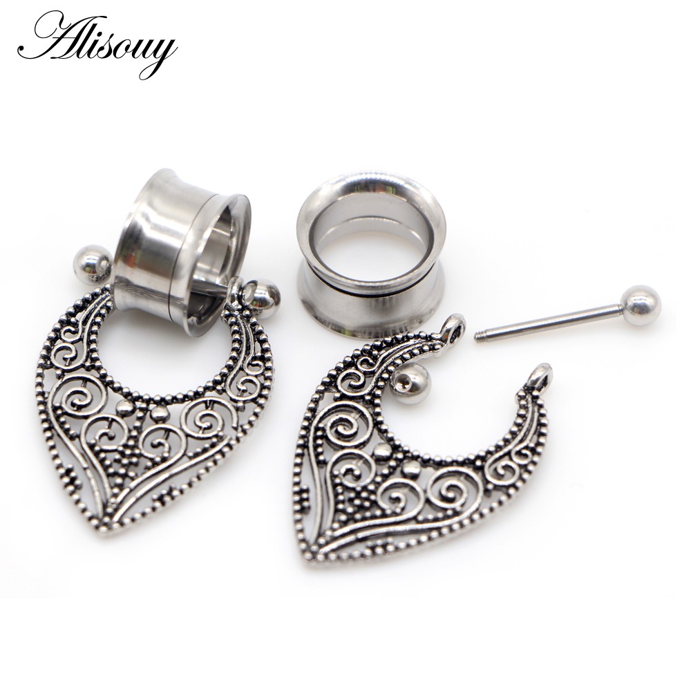 Alisouy 2 Peças De Parafuso De Aço Inoxidável Pendurado Tampões De Ouvido Túneis Flare Carne Ajuste Expansão Brinco Medi