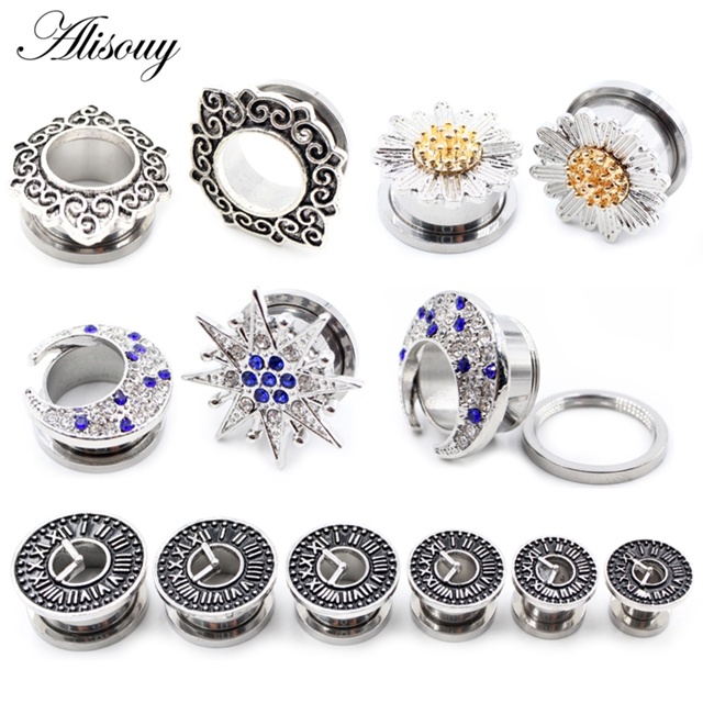 Catalogado na subcategoria Brincos (de Acessórios de Moda), Alisouy 2 Peças Flor De Aço Inoxidável CZ Moon Star Clock Túneis De Orelha De Parafuso Expandar Medidores Corporais Piercing Joias está à venda na Shopee Brasil por R$ 14,91. Nota 4.9 de 5 na Shopee e 14 unidades vendidas, este produto se destaca pelo excelente custo-benefício.