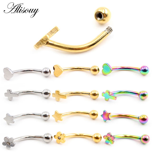 Alisouy 2 Peças Heart Cross Star Flower Stainess Steel Zircon CZ Sobrancelha Curva Anel Labial Snug Daith Helix Brincos Piercing Jewelry