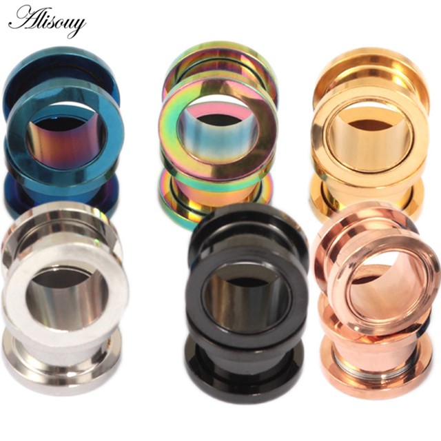 Alisouy 2PC 2-30mm Medidores Auriculares 316L Túneis De Aço Inoxidável Plugues Perfurantes Jóias Esticadores Expansores E