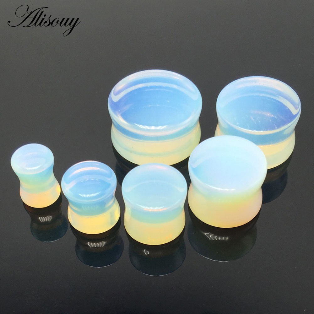 Alisouy 2PCS Orelha Expansora 1 Par De Pedra Opalaita Tampões Túneis Jóias De Perfuração Corporal