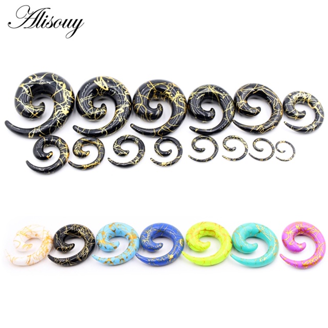 Alisouy 2Pieces 1.6mm-20mm Linha Pontos De Onda Acrílico Espiral Medidores De Orelha Túneis Plugues Maca Expansor Brincos Piercing Jóias Corporais