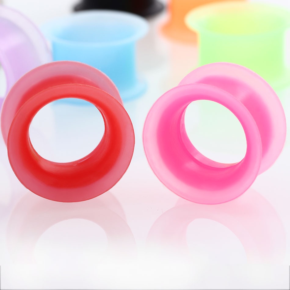 Alisouy 2Pieces Silicone Flexível Fino Duplo Flaresh Túnel De Orelha Tampões Expansor Brincos Com Maca 3mm-25mm