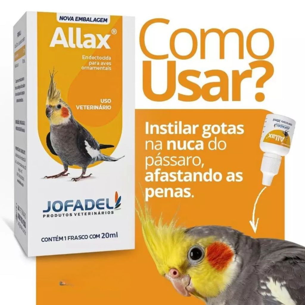 | Allax Jofadel 20ml Para Pássaros e Aves Ácaro, Sarna, Verme este produto | R$ 62,99 | 50% | 5.0/5 | 1 |