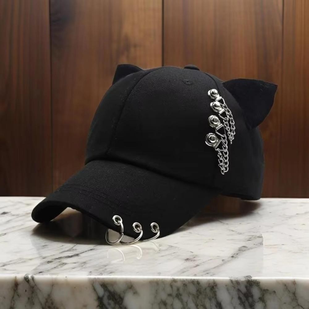 ALLFORYOU1 Chapéu De Acampamento , Boné De Beisebol Preto De Subcultura , Design De Orelha De Gato Com Pingente De Metal