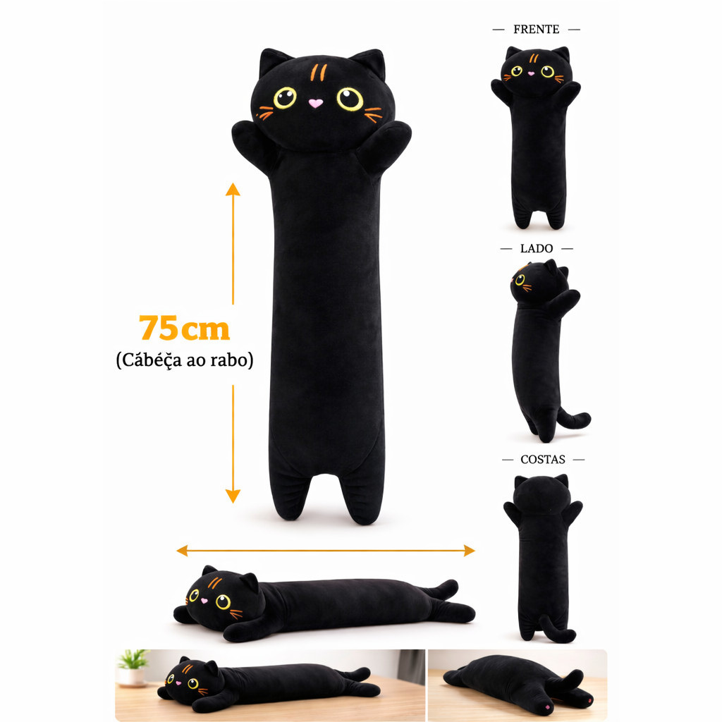 ************POSTAGEM EM 24 HORAS*********** Almofada Abraço Pelúcia Gato Gigante – 75cm Conforto, fofura e carinho em um só abraço! Transforme seus momentos de descanso em pura alegria com a Pelúcia Gato Xuxão, feita em material macio, plush de alta qualidade e enchimento anti-alérgico. Perfeita para abraçar, decorar o quarto, presentear ou dormir juntinho — o Gato é o companheiro ideal para todas as idades! Destaques do produto: Pelúcia gigante disponível em 75cm Aproximadamente Da cabeça ao Rabo. Material super macio e agradável ao toque (plush premium) Enchimento anti-alérgico e atóxico – seguro para crianças e adultos Perfeito para presente de aniversário, Dia das Crianças, Namorados ou decoração de quarto Envio imediato com total segurança e embalagem reforçada Por que escolher a Almofada Gato ? ️ Produto com ótima costura e acabamento realista ️ Não solta pelos e mantém a forma mesmo após muitas lavagens ️ Sucesso garantido entre crianças e colecionadores ️ Ideal para quem ama conforto e personagens Disney Perguntas frequentes 1️⃣ É anti-alérgica mesmo? Sim! Produzida com enchimento de fibra siliconada e tecido hipoalergênico. 2️⃣ Tem pronta entrega? Sim! Envio imediato direto do nosso estoque. 3️⃣ Serve como travesseiro ou almofada de corpo? Sim! O modelo de 75cm é perfeito para dormir abraçado(a). Garanta já o seu Gato receba um abraço cheio de fofura! Aproveite o envio imediato e surpreenda quem você ama com essa pelúcia incrível