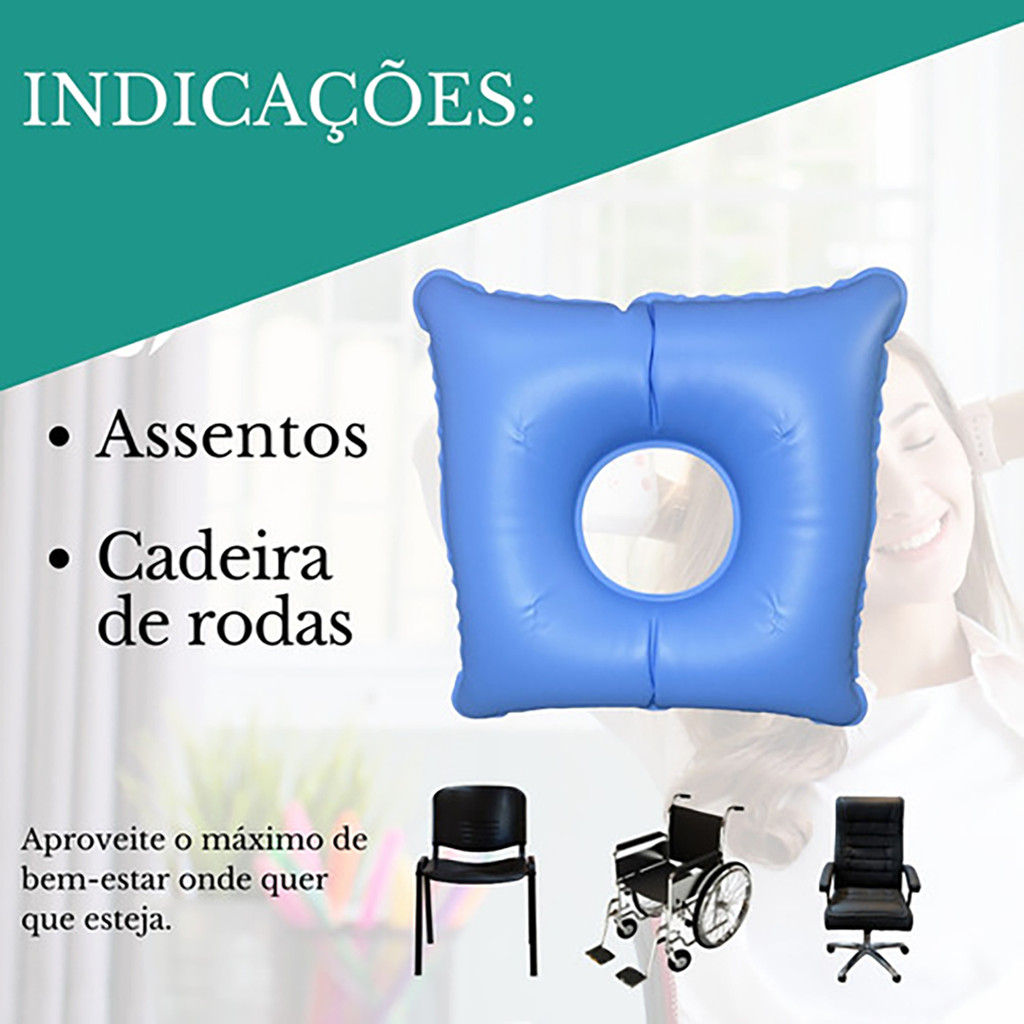 Almofada Água ar Cadeirante Quadrada Com orifício Meio 130 Kg Boia Hemorroida Cadeira Rodas Ortopédica