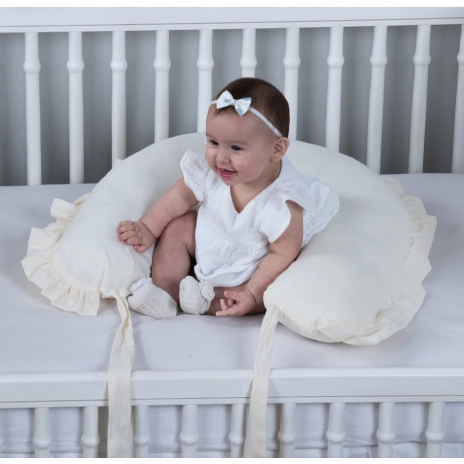 Almofada amamentação grande babado percal 200 fios 100% algodão Palha