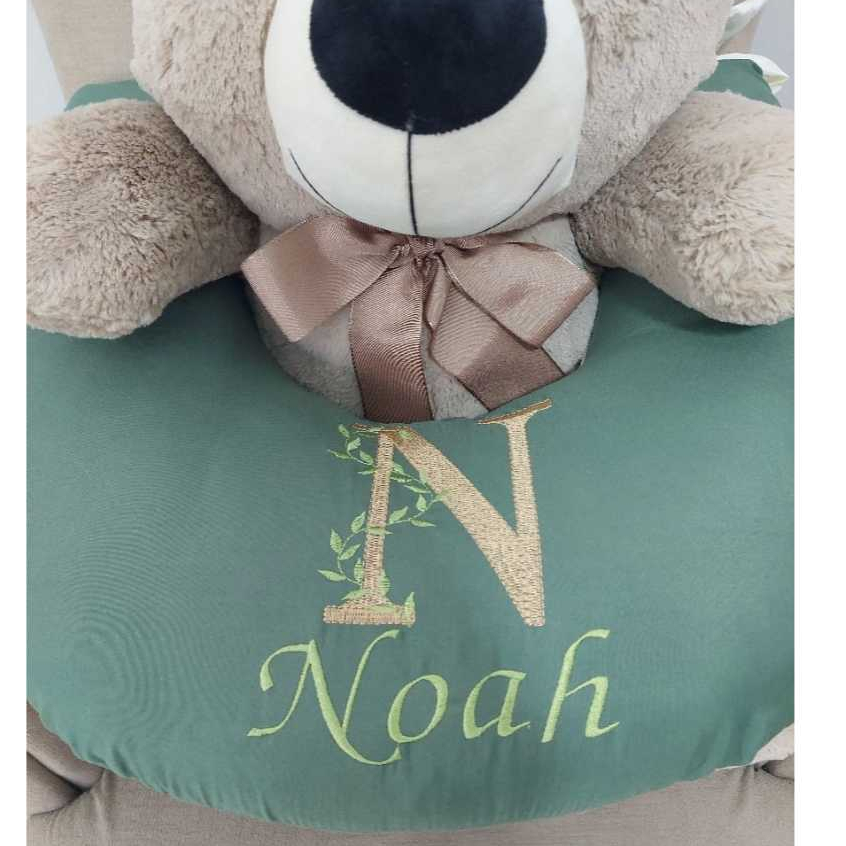 ALMOFADA AMAMENTAÇÃO PERSONALIZADA COM NOME DO SEU BEBÊ - PERCAL 200 FIOS VERDE MILITAR